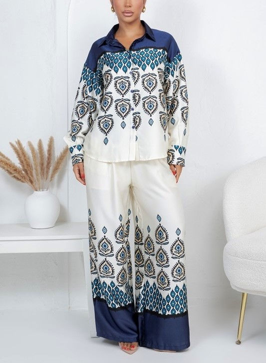 GRAPHIC PRINT SHIRT AND PANTS SATIN SET
